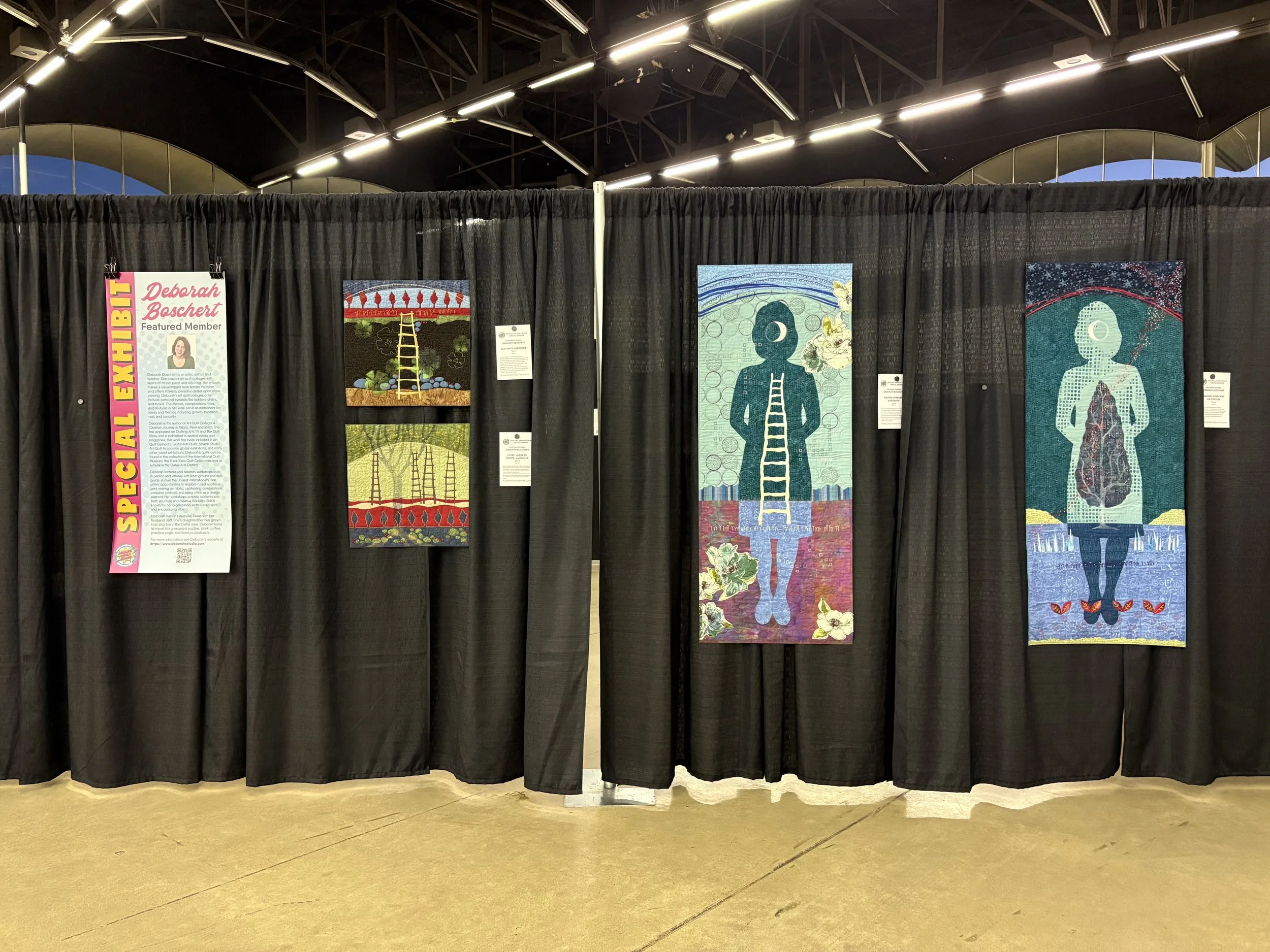 It was such an honor to be invited by the Quilters Guild of Dallas to be one of the featured artists at the 2025 Dallas Quilt Show. I selected 26 art quilt collages to including in the exhibit. They ranged from 2012 to 2023 and embody the style of work layering fabric, paint and stitch, personal symbols, bold contemporary compositions that make an impact from across the room and include lots of intimate details that can be appreciated upon close viewing.
