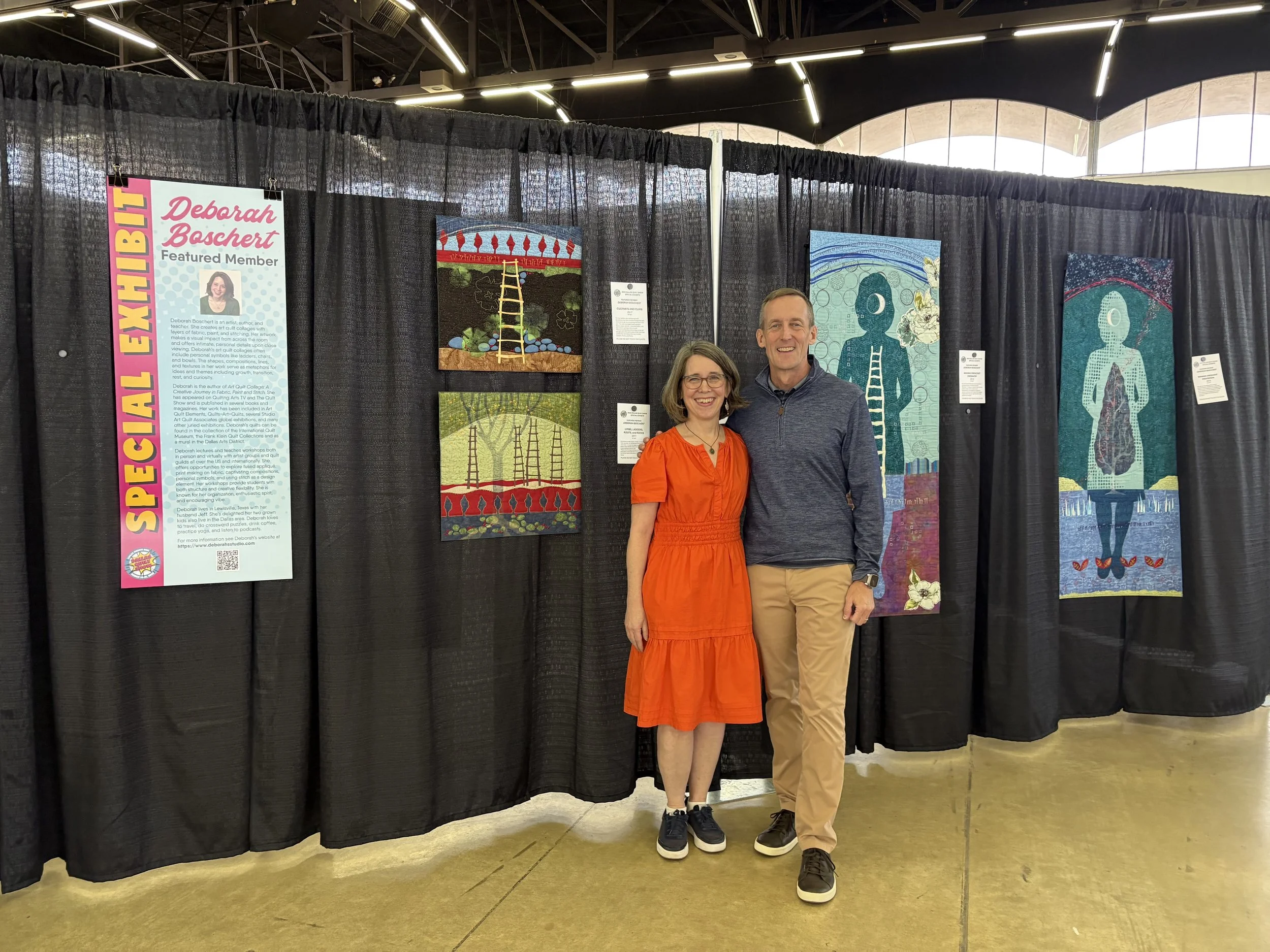 My husband Jeff even made a special trip back from his Navy job in Korea to see the show (and help with takedown). I’m beyond grateful for the friends and family who support me in creating art—and who truly see me in these layers of fabric, paint, and stitch.